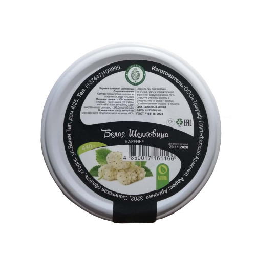 Варенье из белой шелковицы 440гр – сладкое наслаждение с пользой для здоровья! Попробуйте уникальное варенье из белой шелковицы – это не просто десерт, а настоящий кладезь витаминов и минералов. Белая шелковица, известная своими полезными свойствами, сохраняет свои ценные качества даже после пр...
