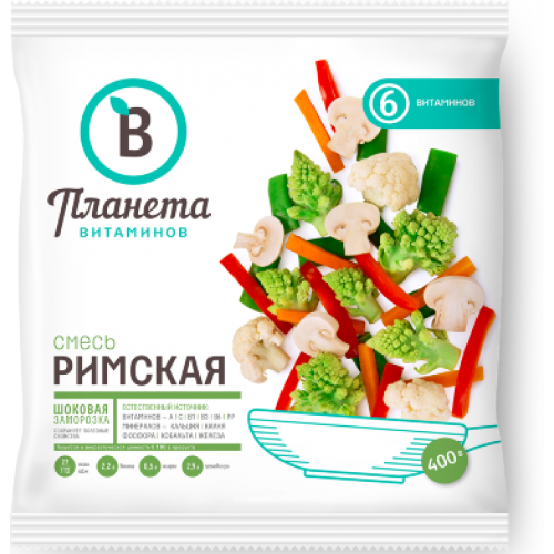 Состав: Цветная капуста, капуста брокколи, морковь Пищевая ценность: жир — 0.1 г, белок — 2.5 г, углеводы — 1.8 г. Энергетическая ценность: 26 ккал. Год урожая 2021. Хранить не более 720 дней при температуре — 18 °C. ТУ 10.39.11-010-53420297-2019